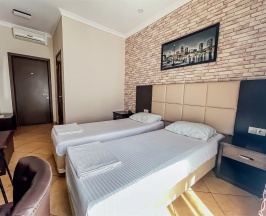Останавливались проездом на одну ночь и были в приятном удивление. Номер был чистым и уютным. Кровати не продавлены ,чистая постель ,холодильник ,кондиционер .