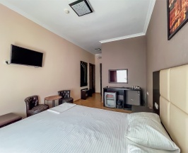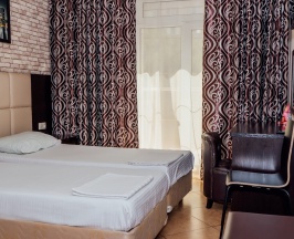 Просторный светлый номер, в котором есть все необходимое для комфортного отдыха. Располагается на первом этаже отеля.