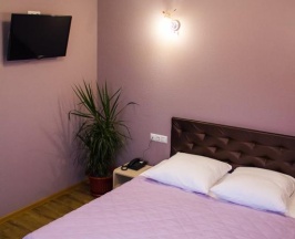 В номере: двуспальная кровать (1600*2000), кондиционер, прикроватные тумбы, журнальный стол, стулья, шкаф- купе, плазменный телевизор, кабельное TV, бесплатный Wi-Fi интернет в каждом номере, зеркало, кондиционер.