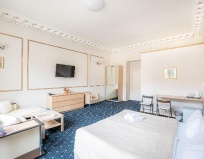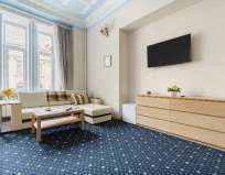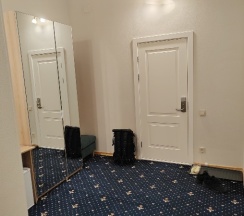 3. Номер просторный ,есть холодильник и чайник, микроволновая печь находится на кухне (об этом нас предупредил менеджер),шкаф достаточно большой,есть коврик под обувь и одноразовые тапочки,пол покрыт ковролином(за счёт этого он не был холодным).