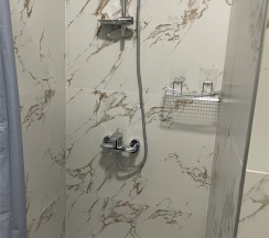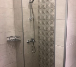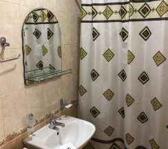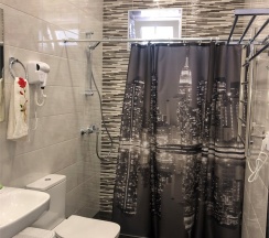 В ванной электрический полотенцесушитель, фен, одноразовые шампунь и гель для душа, дали нам полотенца. Шторка в ванной той самой длины, чтобы нигде не расплескивалась вода. Чистенько в номере было.