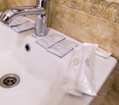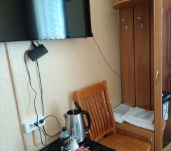 Не смотря на наш поздний приезд, заселили нам оперативно. Я прям с ног валилась, хорошо, что вся эта процедура с оформлением быстро прошла. Номер был отличный, с разовым гигиеническим набором, новой мебелью и работающей техникой. Выбором гостиницы остались довольны ☺