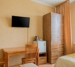 Гостиница отличная. Удобная стоянка, вежливый персонал. Снимали домик на три человека для переночевать перед полётом. Удобный домик со всем необходимым. Чисто, свежее бельё, приятный душ, туалет, кондиционер, двор. Остались всем довольны и цена по Артёму 6 тр, самая низкая. Единственным минусом оказался холодильник. В описании была морозильная камера или холодильник с полноценной морозильной камерой, а по факту стоял малыш на пять булок хлеба.Везём икру и это важно.