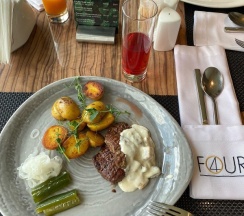 Завтраки были очень вкусными, можно было найти еду на любой вкус, выбор был большим (так как мы отдыхали 2 ночи, мы оценили, что шведский стол каждый раз был разный)