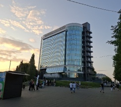 Нам понравилась забота, с которой нам подошёл персонал отеля. Заселение прошло очень быстро, в качестве комплимента нам бесплатно повысили уровень номера, поэтому мы наслаждались отличным видом с 9 этажа на чистый и уютный парк, пруд и колесо обозрения (нам даже повезло насладиться ночью фейерверком, панорамные окна делают своё дело)