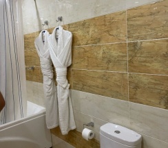 Комфортный номер был с удобной кроватью, а диван раздвигался так, что на нём могли бы поместиться ещё 3 человека. При этом спала на нём только одна девочка, прямо как королева. В номере было всё для удобства: тапочки, мыльные принадлежности, халаты. Приятным бонусом были вода и чайник. Завтраки были прекрасные, а кофе – очень вкусный, хоть и сублимированный. Если наш путь снова будет проходить через Пятигорск, то обязательно вернёмся в этот отель. Благодарю вас за то, что держите марку!