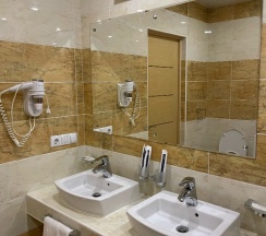 Что понравилось: цена двухместного номера, стиль в номере, чистота идеальная санузла,комплекты полотенец/тапочек/мыльно-рыльное. Отличная звукоизоляция меж комнатами, мы никого не слышали из соседей(один раз телевизор у кого то громко играл недолго и все). Приветливый персонал, девочки дружелюбные (такое к сожалению в Минводах не часто).