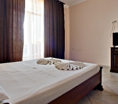 Номера с ремонтом, вид с балкона шикарный, персонал мега крутой, тихо, можно выспаться, есть детская площадка, магазины и аптеки рядом, до моря по прямой центральной улице 10 мин. пешком. Есть кухня на которой можно готовить с выходном в огромный зал с телевизором.Так же на территории открыли бассейн с лежаками)