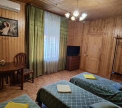 Понравилось: Комфортно. Удобно. Тихо и спокойно. В номере все удобства. Есть столовая общая. Все сделанно под дерево. Очень уютно.