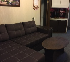 Номер категории «люкс» - современный и уютный, с системой кондиционирования воздуха и всеми удобствами. В нем имеется просторная гостиная с мини-кухней, с диваном, два телевизора SMART, журнальный столик, а также спальня, меблированная двуспальной кроватью, туалетным столиком, тумбочкой для личных вещей и вместительным шкафом для одежды. Санузел номера «люкс» оборудован всем необходимым. Выход в Internet по технологии Wi-Fi (бесплатно).