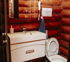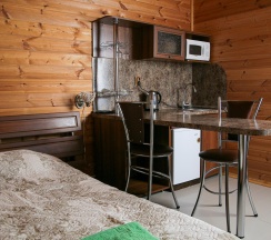 Комфортабельные срубовые дома с индивидуальным отоплением, оснащенные современной бытовой техникой, красивой и удобной мебелью.