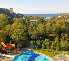 Хороший четырехзвездочный санаторий, отдыхаем здесь второй раз. Красивая ухоженная территория, вежливый персонал, у нас на этаже работала горничная Наталья - очень внимательный человек, замена полотенец ежедневно, уборка качественная- умничка! В столовую лучше ходить согласно рекомендациям, они предупредительно указаны на дверях в сам обеденный зал, а именно, если на обед прийти к 13: 00, то и загруженность большая, если в 14:30, то и людей, и толкучки меньше. Бассейны чистые. Ну и самое потрясающее это море и природа вокруг санатория!