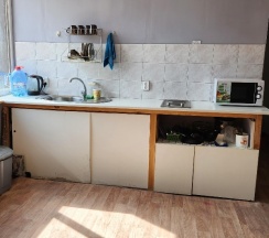 Не понравилось: Ремонт в домике сделан руками местных народных «умельцев» (слова хозяйки). Этим всё сказано. Холодильник так и не работает(гудит, но не охлаждает, при открытии дверцы запах тухлятины) - пользоваться не возможно.. В душе забит слив.