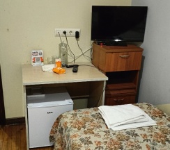 Номер нам достался чистый, с работающим кондиционером и телевизором. В номере были все базовые удобства - кровать, стол, шкаф, холодильник, чайник. Убирались регулярно, но, возможно, не очень тщательно — несколько раз находили пыль в углах.
