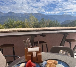 Были там с семьей. Комфортный, милый, уютный отель. Персонал тоже очень милый и доброжелательный. Бассейн открытый с видом на горы. Номера уютные с балкончиком на красивый вид. Особенно понравились завтраки, разнообразные и очень вкусные.