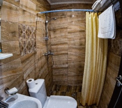 Номер уютный, чистый. Отдыхала с 2 детьми и сестрой. Был номер с выходом на балкон, вид очень красивый на море. В номере есть холодильник, своя ванна и туалет, телевизор, фен, чистенькое и свежее постельное белье и полотенца. Имеется кондиционер, спасение в жару!