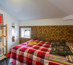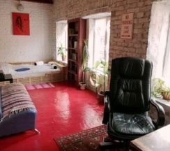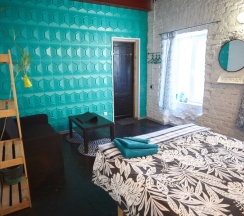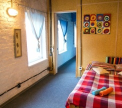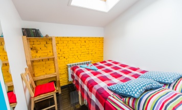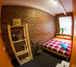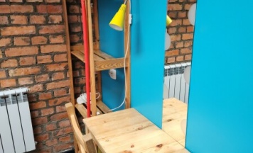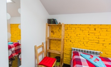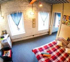 В комнате есть двухярусная кровать, стол, стул, табуретка, зеркало, вентилятор, светильник и вешалка для одежды. Душ и туалет общие на этаже. В общем пользовании имеется стационарный фен, утюг, гладильная доска. На нижнем этаже в распоряжении гостей кухня с холодильником, чаем, м/в печью и стиральной машиной (печка отсутствует). Все гости имеют возможность отдыхать в гостевой зоне (лаундж). Так же, у нас ест арт-мастерская, где вы можете поучаствовать в мастер-классе по абстрактному рисованию и сотворить свой собственный шедевр, не имея никаких навыков рисования (за дополнительную плату).
