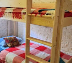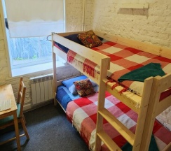 Небольшая двухместная комната с двумя раздельными спальными местами в виде двухъярусной кровати.