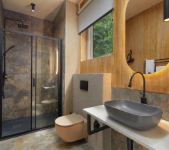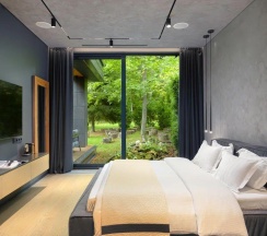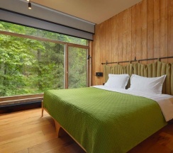 А современный дизайн коттеджей с просторной верандой на крыше, собственным джакузи, неповторимым природным ландшафтом и отличным сервисом обеспечат Вам по-настоящему комфортный отдых.