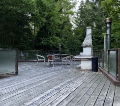 Не понравилось: При бронировании домика, много раз переписывался с Бертой, для понимания что есть в доме. С начала написали что есть джакузи , на следующий день, было письмо от них , что нет джакузи. Но это не принципиально. Так же по ресторану, было написано, что ресторан работает по выходным, оказалось что и будние дни работал. Но уже было поздно, пришлось все везти с собой. Была небольшая проблема, под окнами начали выкорчевывать пень в 21:30 когда я решил лечь спать, но отреагировали сразу, за это спасибо. Что касается маленького дома, конечно спальня никакая, по лестнице подняться это что то, плюс второй этаж это только название, по факту надстроили перекрытие и всунули кровать, где можно только в полусогнутом состоянии, в итоге спали в низу на диване. Отделка конечно же эконом. Лоска к сожалению нет. Если не придираться к мелочам, то хорошо. Но если брать побольше дом то цена уже кусается, а качество отделки такое же. Если бы сделали приличный ремонт в домах, то цена качество думаю была бы нормальная, но за 24 тысячи дом с двумя спальнями в будни за сутки , не дотягивает.