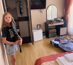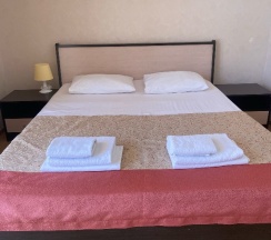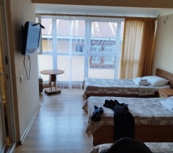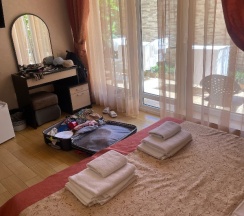 14 дней и 13 ночей провели мы с внучкой в гостевом доме . Местоположение понравилось тем, что рядом ул.Ленина и автобусные остановки соответственно . Пляж близко . Курортный городок оживлен и всегда есть куда сходить . Номер у нас был на 1 этаже . Весь джентльменский набор: ТВ, кондиционер , холодильник, чайник -все работало отлично . За две недели нам заменили постель один раз и два раза комплект полотенец . Нам этого хватило . На территории хорошая кухня со всем необходимым, поэтому приготовить можно хоть банкет . Чисто , уютно . Спали спокойно , никто не орал , не мешал . Единственное , если кто-то не может переносить сирену скорой и полиции , то надо подумать о другом месте . Поскольку сирены орут и день и ночь . Но нас это не напрягало. Напрягал немного матрас . Там уже пружины не спрятать и поэтому , когда я на коленях постояла на матрасе , играя в карты с внучкой , то синяки остались надолго ) Этот вопрос надо бы решить собственнику . А так , спасибо ! Все отлажено : встретили , проводили , решали возникшие вопросы .