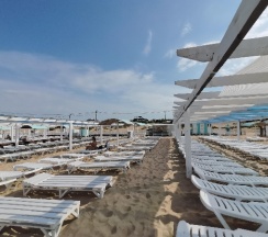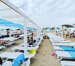 В Витязево песчаный пляж, самый любимый пляж у нашей семьи. В "Астре", что хорошо есть свой оборудованный пляж, не нужно думать о лежаках и где оставить вещи пока плаваешь. Навесы клёвые, туалет, душ, кабинки. Игрушки оставляем песочные у охраны.