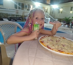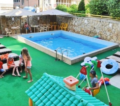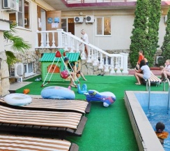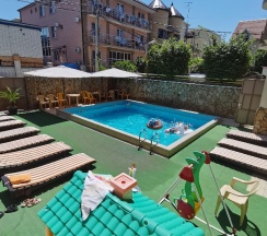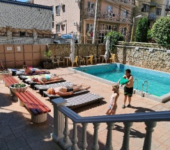 Отличный гостевой дом. Все чисто уютно. Гостеприимные хозяева. Бассейн чистый тёплый. В номерах все есть для удобства (кондиционер, холодильник, фен). Кафе на крыше просто супер, все вкусно, даже ребенок ел, хотя она у нас ещё тот едок. До пляжа не далеко. Пляж чистый, следов мазута не обнаружено. Рядом магазины, рынки. Спасибо огромное за отличный отдых.
