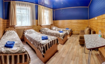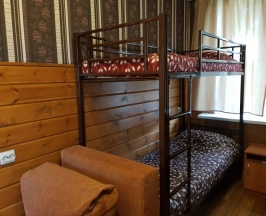В номере 2 двухъярусные кровати, раскладывающийся диван, кресло, стол, вешалка. Санузел с душем и туалетом в холле, в 4 метрах от номера.