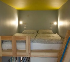 Хороший вариант. Вполне чисто. Близко к центру. Парковки нет, но машину можно оставить рядом с домом. За 1900₽ компактная отдельная комната . Две кровати, два яруса) наверху двуспальная, и внизу на одного. Санузел общий. Есть душ. Есть вендинговый кофе аппарат. Чистые простыни. Полотенце предоставили.Есть кондиционер в комнате