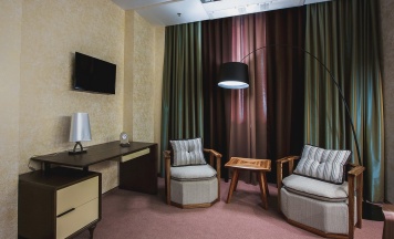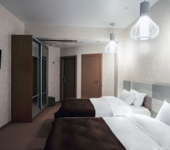 Уютный номер, площадью 28 кв. м, располагает всем необходимым для комфортного проживания. В номере двуспальная кровать, рабочая зона и ванная комната (душевая кабина или ванная по желанию). Из каждого номера открывается потрясающая панорама города, можно выбрать любое направление из четырех: Северное, Южное, Восточное или Западное.