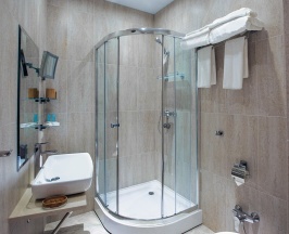 Ванная комната: душевая кабина или ванная (по желанию), фен, комплект косметических средств.