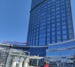 Отличный отель, не пожалели, что остановились. Располагается на 25 этаже, открывается шикарный вид на Мамаев курган и парк развлечений, особенно классно ночью. Номер чистый, убирались каждый день, когда мы уходили (всегда ставили свежую воду, чай, гели для душа, щетки). Завтраки хорошие - каждый день из предложенных блюд выбираешь, что будешь кушать, еда всегда была свежеприготовленная и вкусная. Доступ в фитнес - зал внизу этого центра гостям отеля бесплатно (тренажерка, бассейн небольшой, хамам- один раз сходили вечером, но народу многовато).По соотношению цена-качество стоит того, располагается фактически в центре, и можно доехать до любой важной точки хоть на автобусе. Жили неделю.