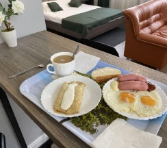 Приветливый персонал, очень комфортное проживание,в 1 минуте ходьбы очень классное уютное кафе , с вкусным кофе и сытными завтраками