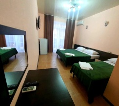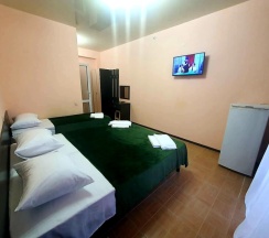 Останавливались в гостевом доме на 1 ночь. В номере чисто, аккуратно, свежая постель и на каждого гостя комплект полотенец. Холодильник, кондиционер, телевизор - всё работает. Наш номер был стандарт, конечно же не ожидали от него условий как в отеле 5 звезд, но мы получили именно то что хотели за адекватные деньги. На балконе столик со стульями и сушилка для вещей. Чистый подогреваемый бассейн, мы в 9 утра в него пошли - вода прекрасная. Во дворе есть бар, который работает с громкой музыкой до 23 ч, затем тишина. Прям в гостевом доме есть столовая, в которой оооочень вкусно кормят (еда прям как домашняя). На этаже чайник. До пляжа 7 минут ходьбы с ребёнком, всё рядом. С удовольствием вернулись бы сюда ещё.