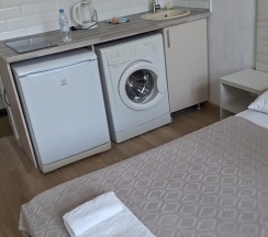 Отличное место!!! В самом центре! Рядом центральная набережная 5 минут пешком, множество магазинов и кафе. На первом этаже хорошая столовая. Персонал отзывчивый, приветливый. Заселили раньше 14:00 без доплат. Номер нам очень понравился, чистый и уютный, белоснежная постель и полотенца. Бронировали апартаменты, в номере кухня, стиральная машина, соответствуют фото и описанию. Уборка в номере ежедневная. Нам все очень понравилось.