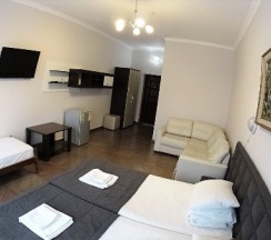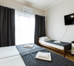 Отдыхали компанией, снимали 2 номера семейный с видом на Сириус и комфорт с видом на горы и двор, очень понравилось расположение, всё в пешей доступности, внизу очень вкусная столовая "Сели поели". Отношение персонала порадовало: быстрая реакция на все просьбы. В номере есть всё необходимое для проживания: принадлежности для умывания, вода в кулере, чай, посуда. Удобный матрас (для нас было очень важно), раздельные кровати!!! Обязательно будем рекомендовать друзьям!