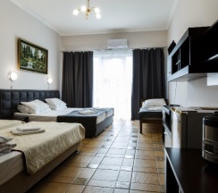 Прекрасный, уютный гостевой дом. Мы брали семейный номер - потрясающе! Чисто, ухоженно. Внизу имеется столовая - неплохой ассортимент и цена. По самому отелю: расположен он не в Сочи, а именно в пгт Сириус, рядом , в пешей доступности все достопримечательности Олимпийского парка, остановка общественного транспорта. Но! При выборе места, вы должны точно понимать-это не лакшери отель, там нет лифта, рядом нет магазинов, это место для спокойного отдыха, возможно, короткого визита. Администратор Ольга - умничка, просто пчелка!