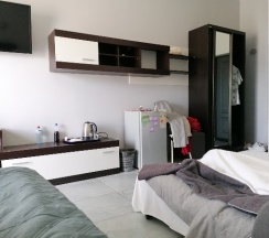 Остались только самые приятные впечатления! Идеальная чистота в номерах, собственный мини-сейф- особенно удобно, когда собираешься на пляж. Близость к морю фантастическая. Рядом столовая, поэтому с едой проблем не было. Холодильник, телевизор и мебель, ремонт. На территории свои лежаки, внутренний сад выглядит аккуратно, лишние люди не зайдут- есть камеры. Да и само расположение удобное. От аэропорта легко добраться на трансфере предоставляемый отелем (услуга платная) или проехаться с ветерком на такси прямо до отеля. В общем, денег не пожалела. Отлично провела отпуск!!!
