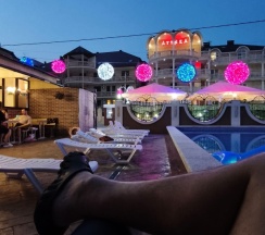 Мега Люкс, любимый отель. Отдыхаем здесь второй год подряд. Все отлично, номера комфортные, уютные. Кровати удобные. Уборка номера каждые 3 дня со сменой постельного белья и полотенец. Бассейн с подогревом. В столовой при отеле все всегда свежее и очень вкусно, ассортимент и для капризных малоежек и для любителей много и вкусно покушать. А вечерний шашлык на мангале это не описать, ну Мега Вкусно.