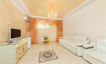 В номере комфортная двуспальная кровать + диван-кровать. Есть возможность установки одного дополнительного места ( оплачивается отдельно: 600 р. за доп. место ).