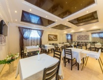 Отдыхали с тремя детьми в июле. Гостевой дом шикарный: чисто, светло, красиво, уютно. Приятный ремонт, у греческом стиле. Номер прекрасный: хорошая кровать с удобным матрасом, диван и кресло раскладываются(Детям в самый раз). На этаже гладильная доска с утюгом, электрочайник. В номере Есть кондиционер, балкон. Есть также на цокольном этаже небольшой тренажерный зал, которым мы с радостью воспользовались. Есть ещё обеденная зона на цокольном этаже с СВЧ-печью и столовыми приборами. Готовить самим у них нельзя на кухне. Детская площадка перед отелем есть и небольшой бассейн. Для детей самое то! Через дорогу изумительный шашлык! В отель Аниматоры для детей 2 раза в неделю приходят! Само Место тихое. Для отдыха семейного отличное место! Шумоизоляция в номерах отличная! К морю ездили на машине, на косу. Там меньше народа и вода чище. Поэтому пешую удаленность от центрального пляжа не знаю. Рядом магазины и столовые. Отель однозначно рекомендую. Администратор и персонал вежливые,отзывчивые, спокойные. Отдохнули мы прекрасно!