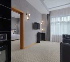 Для Вас: Wi-fi, система кондиционирования, Яндекс ТВ. Для комфортного отдыха двуспальная кровать с ортопедическим матрасом и гиппоалергенным бельем. Рабочая зона с чайной станцией, мини-баром, бутилированной водой и сейфом. В ванной комнате тропический душ, комплектация: халаты, тапочки, косметический набор и на выбор косметика Lucio Classic и Lucio Amber Wood