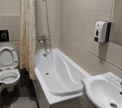 Из минусов очень сильно тонкие подушки, отсутствие одноразовых тапочек и освежителя воздуха в туалете 🙂