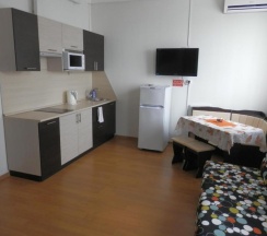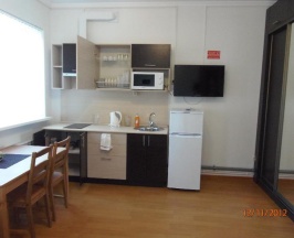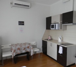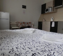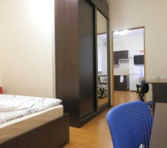 Снял двухместную студию. Номер шикарный. Наличие своей кухни радует. Кровать удобная мягкая. Все понравилось)