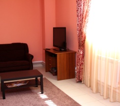Огромная двуспальная кровать. Кондиционер, холодильник. Можно постирать. Покушать только там негде.