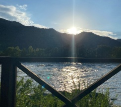 Отличное место, уютно, чисто. Отдыхала семьёй, с детьми. Персонал очень вежливый, внимательный, порядочный.Есть терраса с Видом на Катунь и качели, мои девчонки оценили.А так же мы отдыхали в номере с видом на Катунь, так красиво и атмосферно. Территория чистая, есть мангальная зона, беседки и отличная банька. Вообщем отдыхать одно удовольствие.Обязательно вернусь сюда еще и порекомендую всем своим друзьям. Если бы можно было поставить 10 ⭐ звёзд я бы без всяких сомнений это сделала.Спасибо вам большое 🙏отдых в удовольствие. 👍