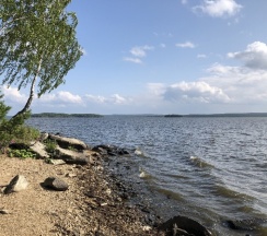 Пляж - это огромный минус. На берегу грязно, валяются стекла, камни, ржавые части сломанных лодок, в том числе и в воде, легко можно пораниться, что и произошло. На выезде с базы пришлось заплатить 700р с автомобиля. Получая летом сверхприбыли (был ажиотаж и очень много народу), наймите трактор, чтобы собрать из воды и берега опасный мусор!