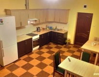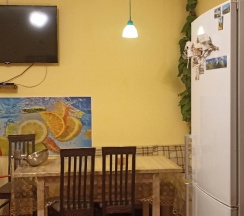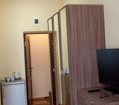 На кухне есть все для приготовления еды + большой телевизор . Кухня большая. В номере так же есть телек, холодильник , свой душ туалет