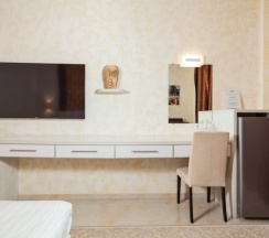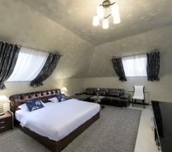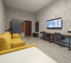 Двухместный. Студия с обеденной зоной, двуспальная + кожаный диван не раскладной. Мини-кухня. Ванная комната в номере. Кондиционер. Телевизор. Бесплатный Wi-Fi.