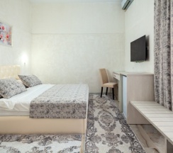 Отличный отель, бассейн конечно маловат и не на крыше, но это совсем не беда, есть кафе, рядом пятёрочка, жд вокзал имеретинский курорт, чистое белое постельное и полотенца, есть одноразовые тапочки, гели, холодильник, сейф. Большое спасибо персоналу, все вежливые, хорошие люди. А также есть подвозка по расписанию до пляжа и обратно от отеля бесплатно. Очень понравилось у Вас, спасибо.